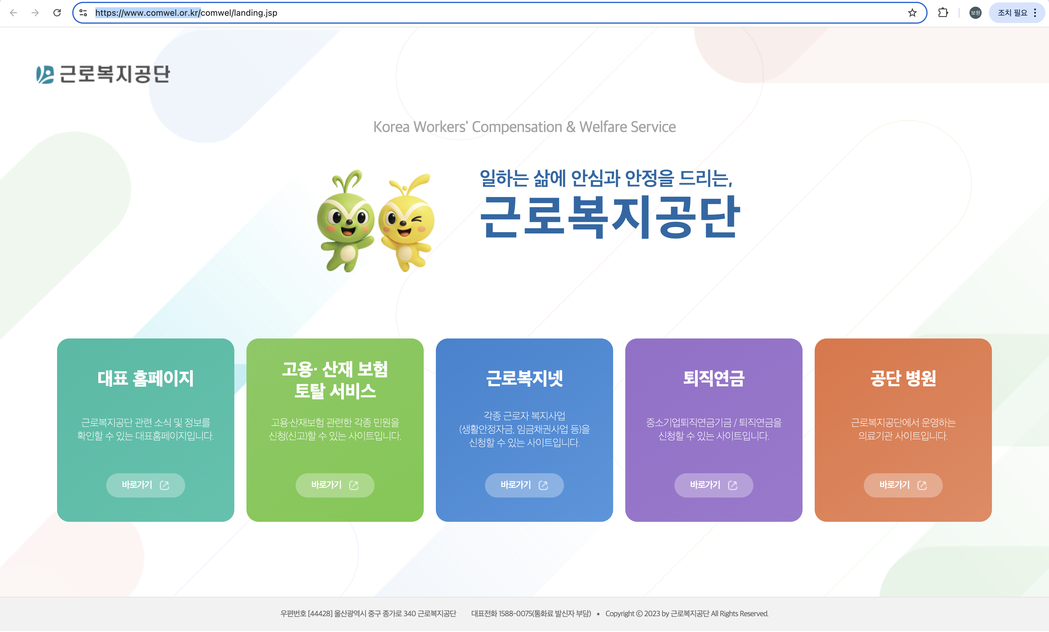 근로복지공단(comwel.or.kr), 복지로(bokjiro.go.kr), 정부 24(gov.kr) —