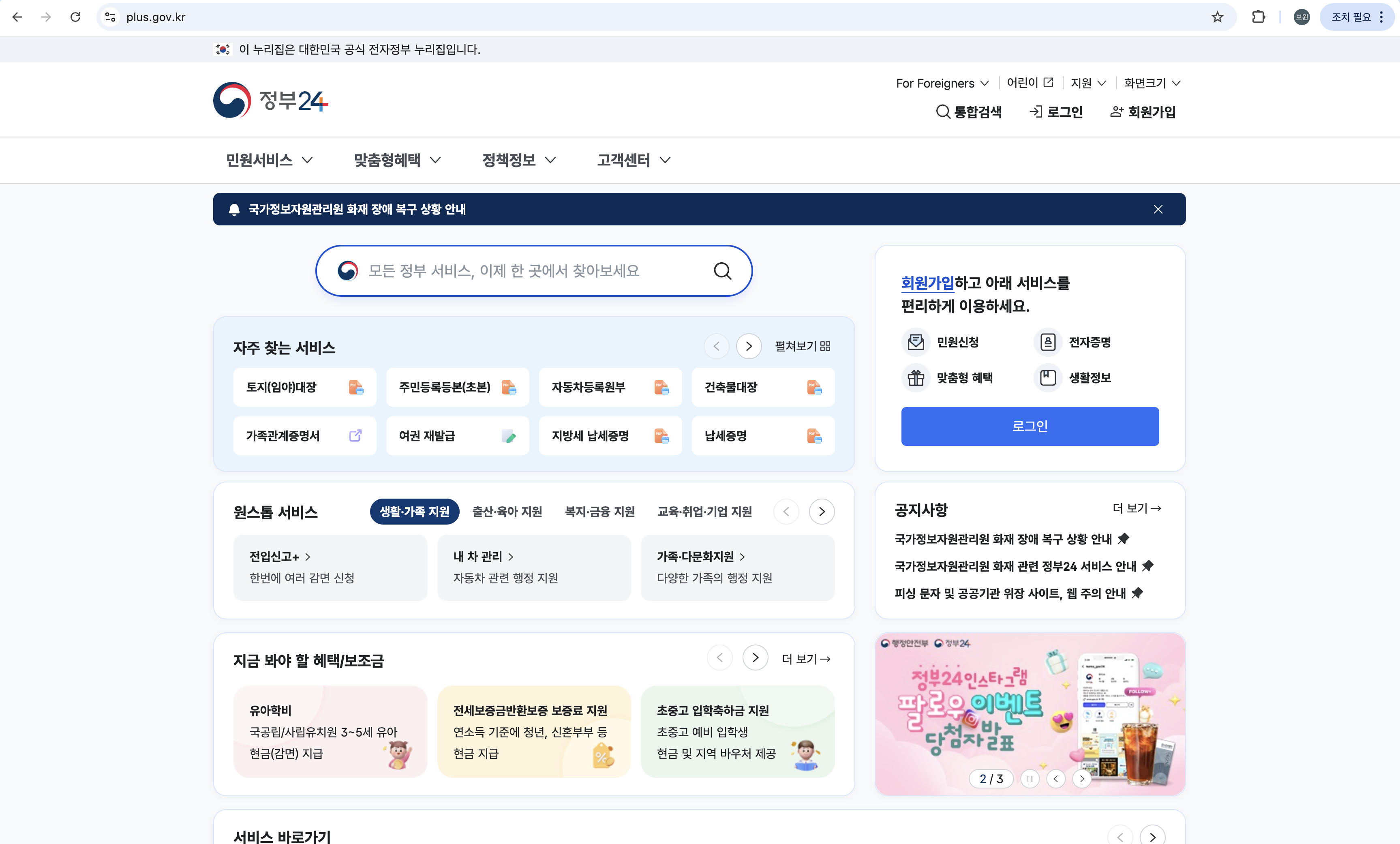 - 정부 24(gov.kr) → 세금·행정·교육 등 공공서비스 신청